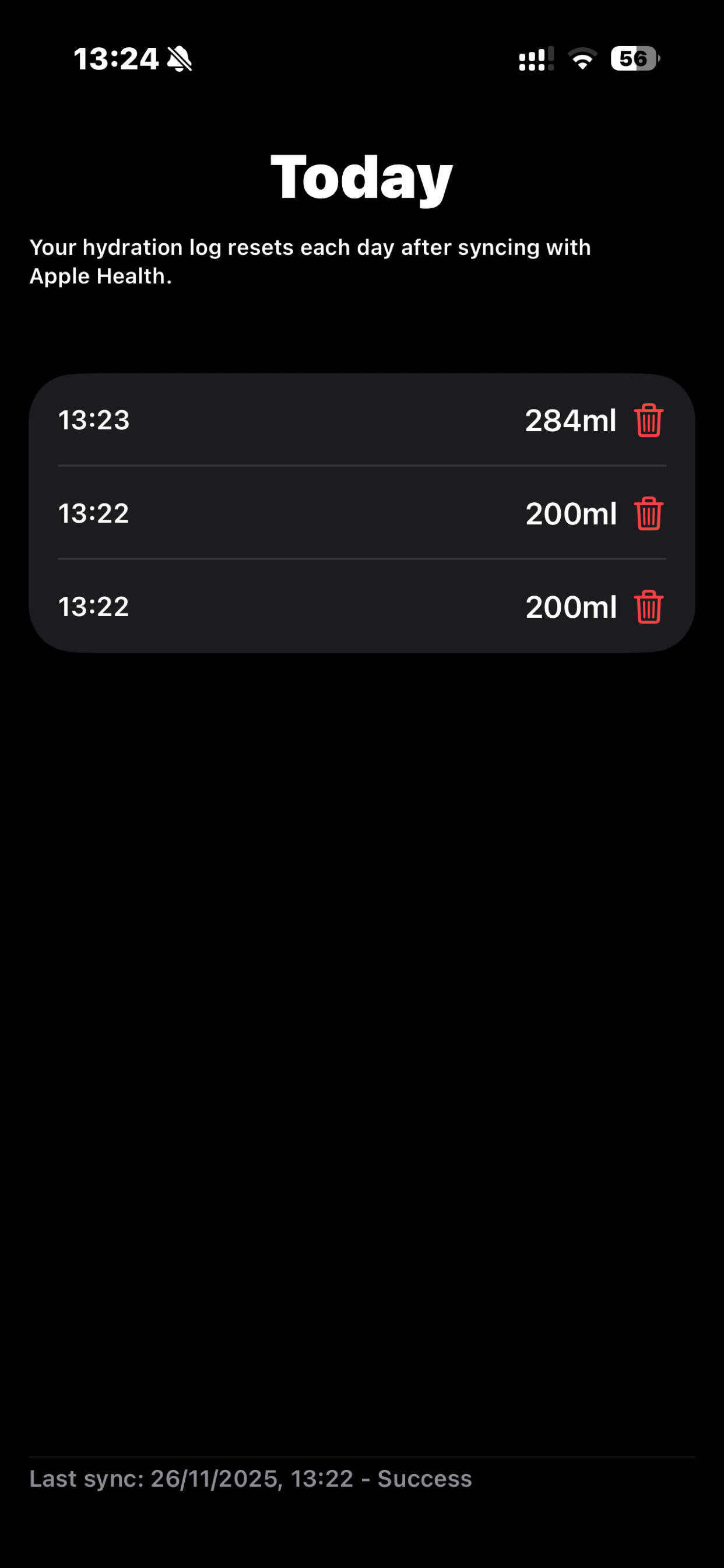 H280 integrates with Apple Health to save and read hydration data. This data stays on your device and is never transmitted to us or any third party. You control access via your device’s Health permissions.Analytics